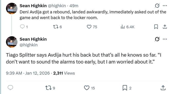 作为开拓者队后场发动机,阿夫迪亚在最后时刻伤退,他在抢下篮板落地后痛苦捂着后腰随后退场。