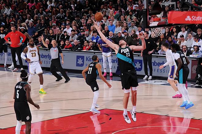 手感不佳又如何!开拓者内线新星还是轻松打爆了湖人的内线